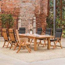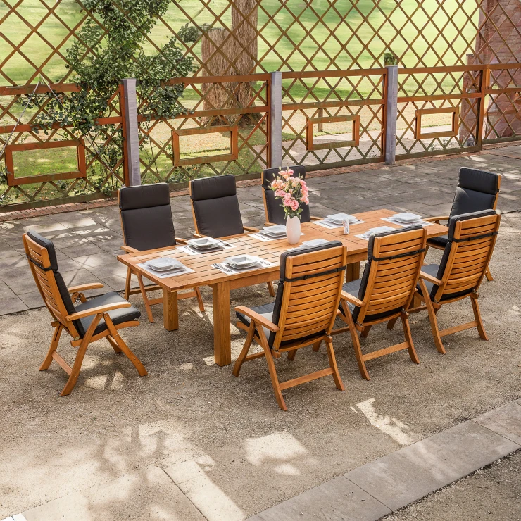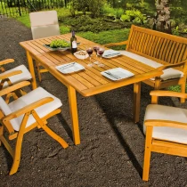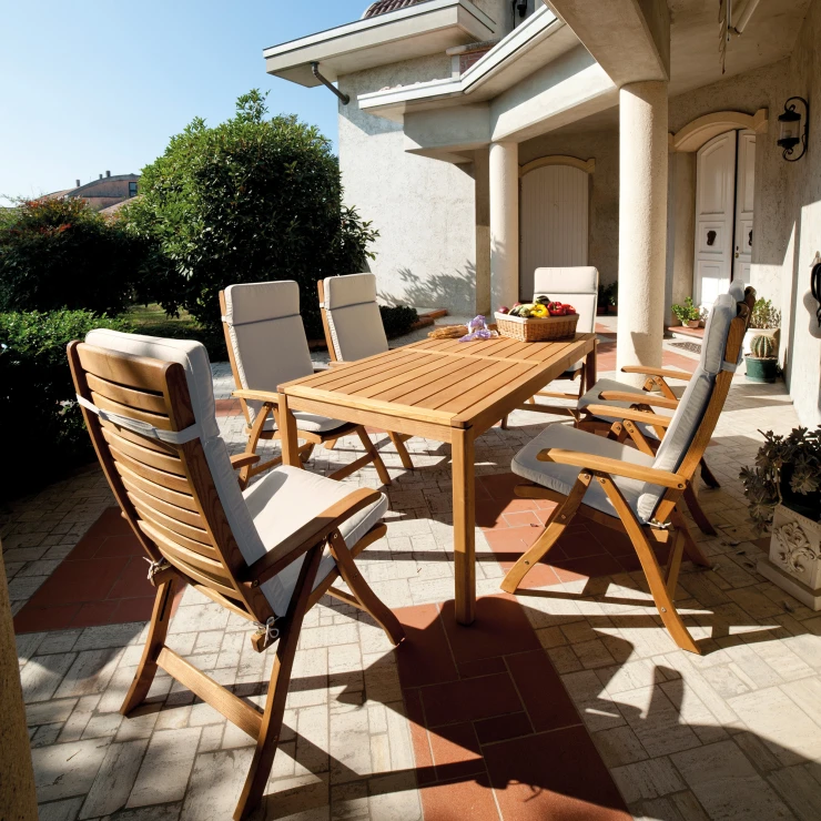 Möblerna är tillverkade av robinia-akacia som oljats med ett dedikerat naturligt olja. Träet erbjuder första klassens motståndskraft mot väderförhållanden och är mycket tåligt mot fukt, sol och temperaturskillnader.