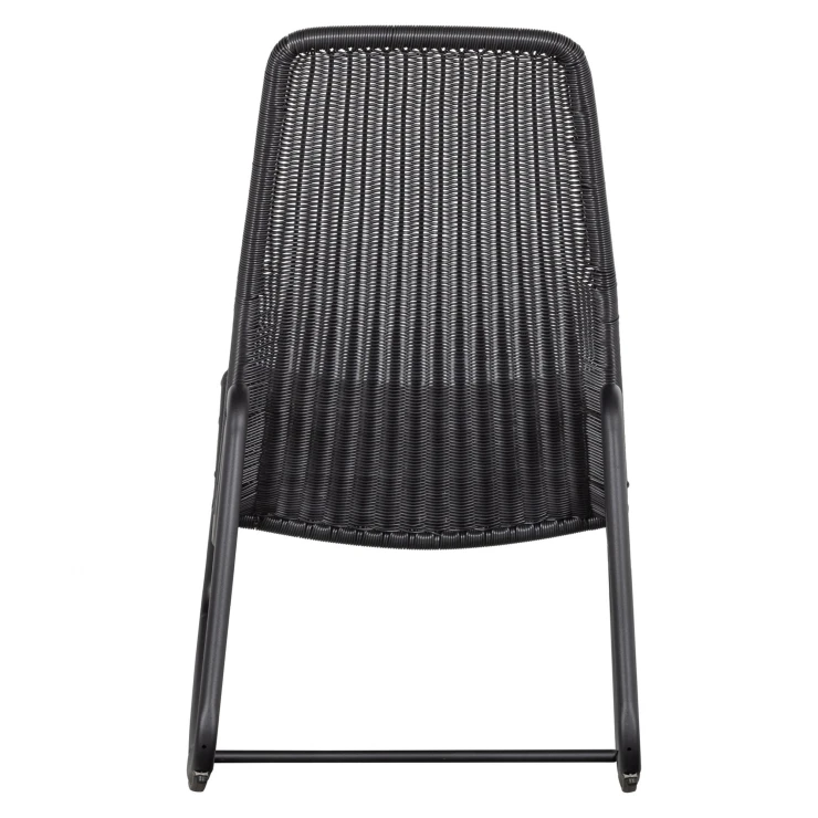 Gungstolen Tom kommer från det nederländska varumärket WOOOD och är tillverkad av svartlackerad rotting. Denna beläggning gör Tom lämplig för alla väderförhållanden. Stativet i svart metall har en matt finish och en förstärkande stång.
