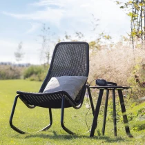 • Utomhus gungstol med avslappnad sittkomfort. Tillverkad av vattentålig rotting i svart.
