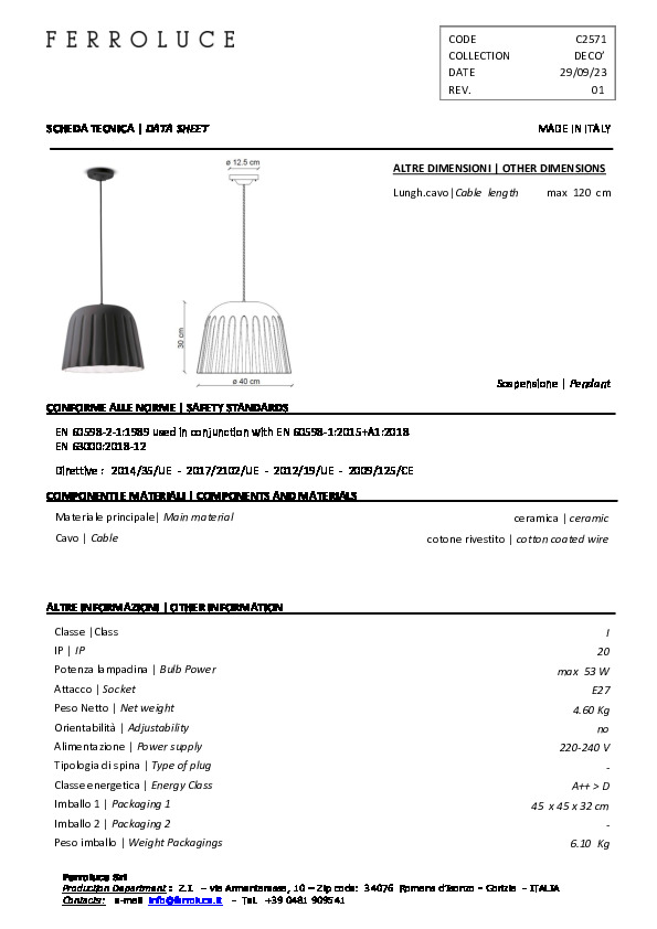 Ferroluce är ett italienskt belysningsvarumärke som grundades 1982 av Miriam och Valter Valentinuz, drivet av en passion för hantverk i järn och keramik. Det familjeägda företaget drivs nu tillsammans med deras barn Monica och Giulio och håller fast vid sina hantverkstraditioner samtidigt som det omfamnar innovation. Ferroluces lampor tillverkas genom en noggrann “Slow Manufacturing”-process, där handgjord kvalitet och uppmärksamhet på detaljer står i fokus.