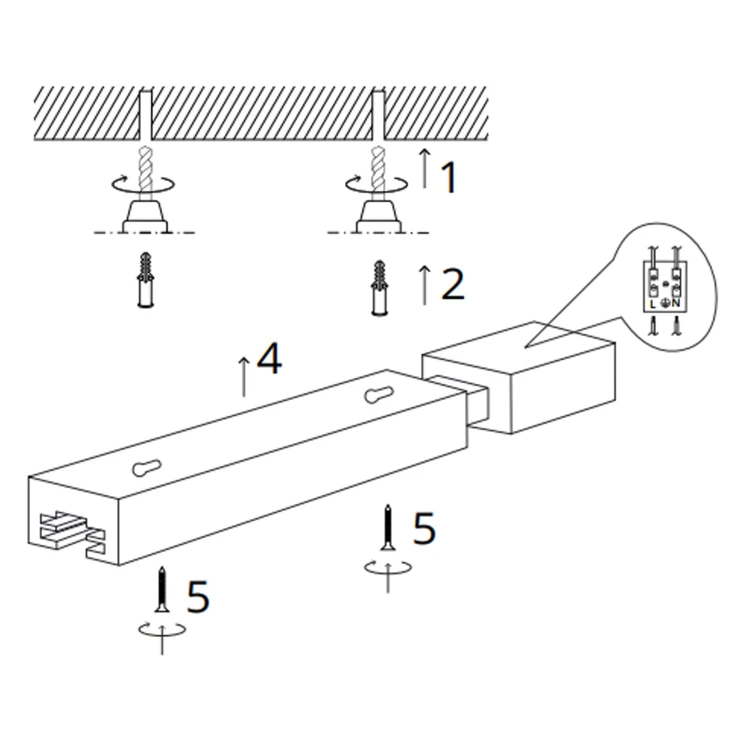 • - Strömskenan inkluderar strömmatning för enkel anslutning till hushållets elsystem