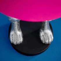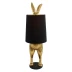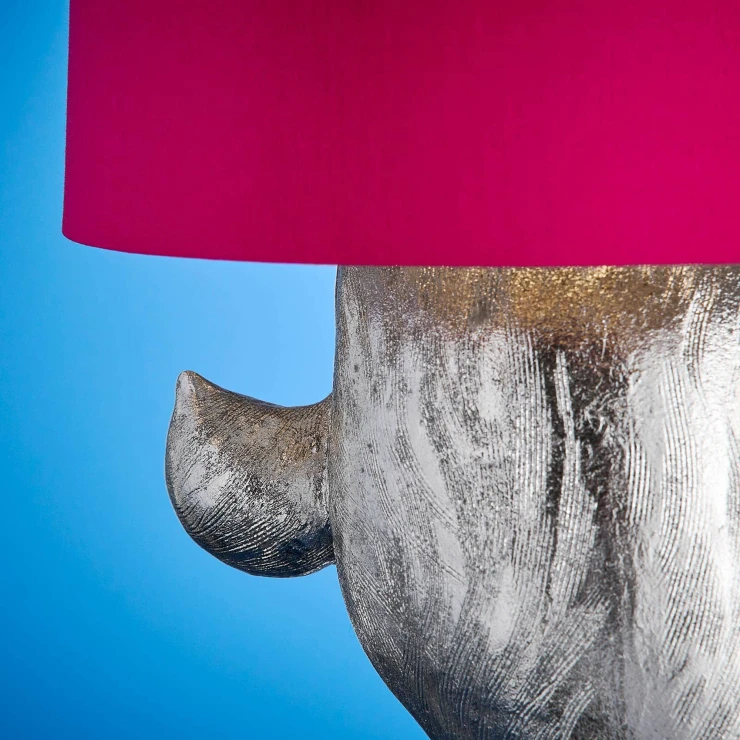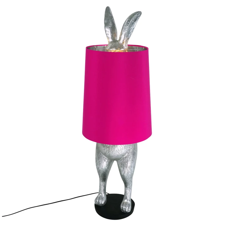 • Den silverfärgade kaninen gömmer sig lekfullt bakom den stora lampskärmen och skapar ett oväntat och humoristiskt uttryck. Modellen finns även med guldfinish för en mer glamorös look.