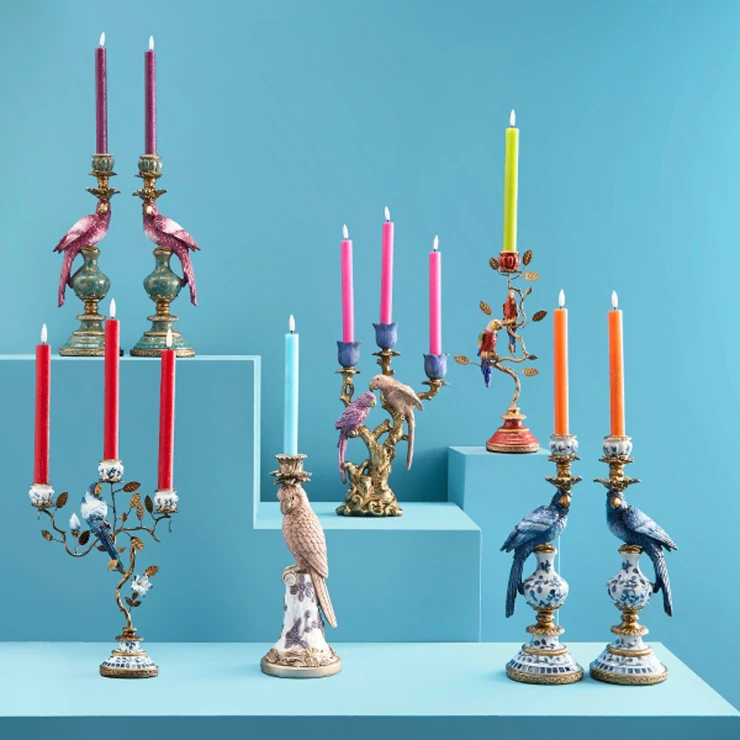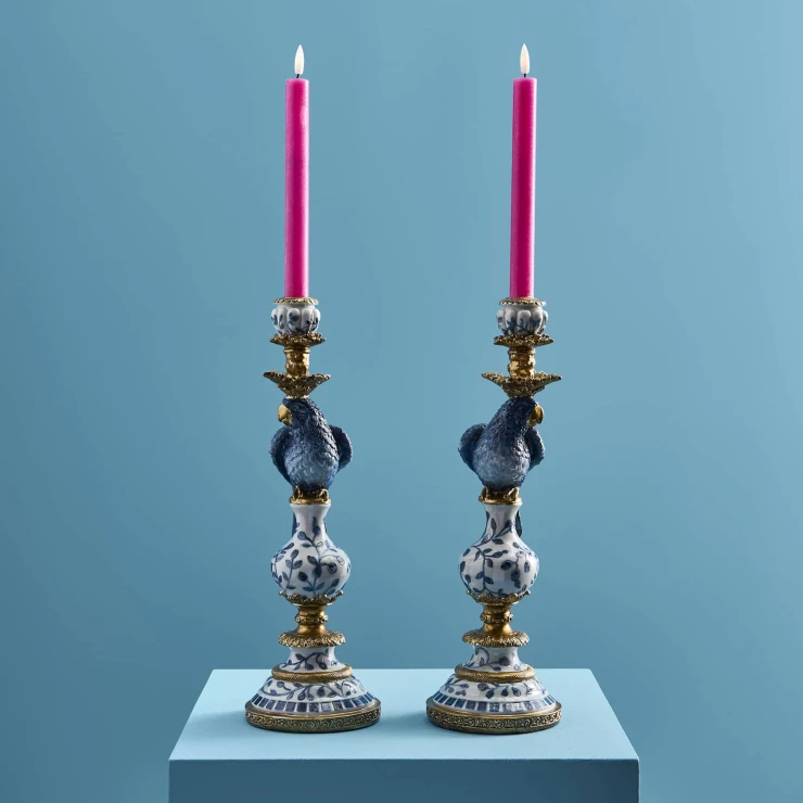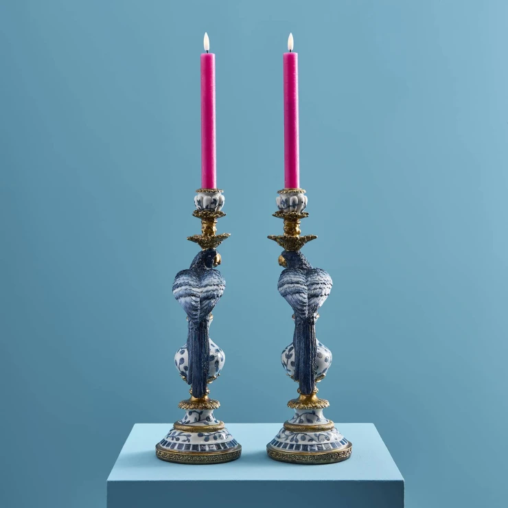 Werner Voss Sæt med Lysestager 2 stk. Parrot Blå, Guld
