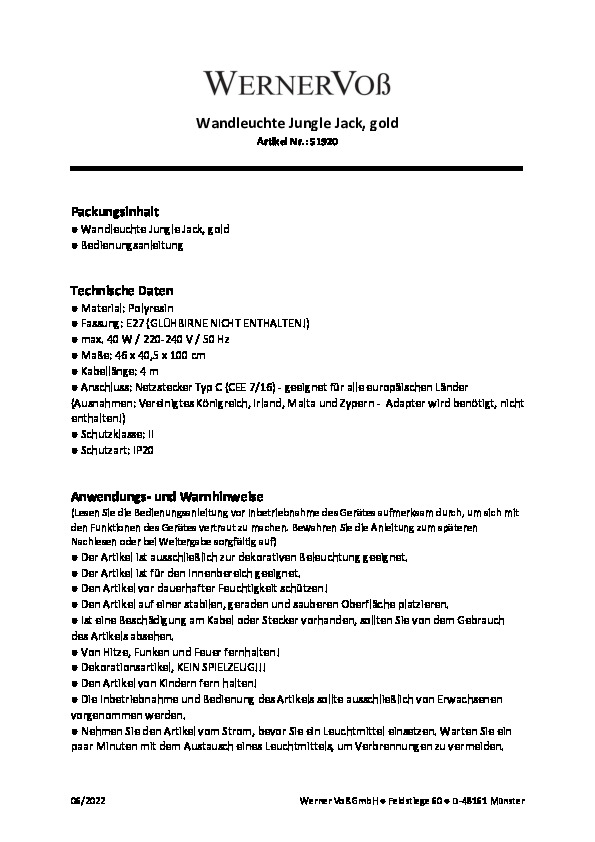 Under varumärket Werner Voss presenterar företaget exklusiva djurlampor och en ständig ström av nya, kreativa mittpunkter med egna unika designkoncept. WERNS produkter kombinerar funktion och konst, vilket inspirerar kunder att skapa personliga och stilsäkra miljöer.