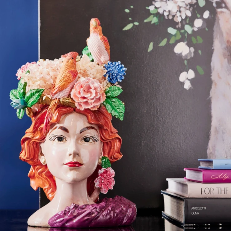 Werner Voss Vase Woman's Head m. Parrots Flerfarvet