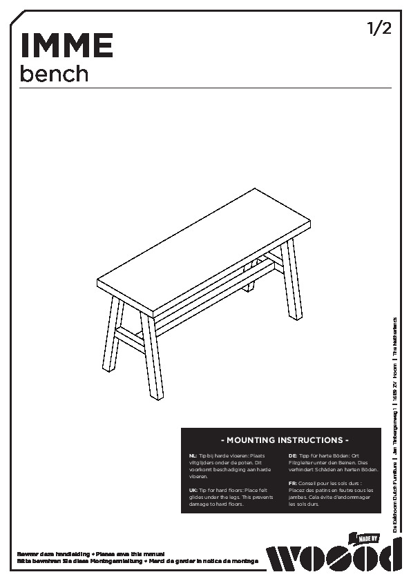 Artikeln levereras i ett paket vid en minsta beställning på 2 stycken. Imme är enkel att montera med hjälp av de medföljande monteringsanvisningarna. För att skydda hårda golv, placera filtglidare under benen.