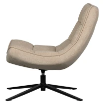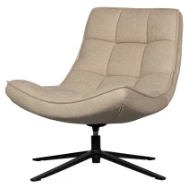 Maudi snurrfåtölj är klädd i ett vävt tyg. Vårt vävda tyg Heidi är slående med sina subtila färgnyanser. Detta vävda tyg har ett synligt vävmönster och är tillverkat av 100 % polyester. Detta ger det vävda tyget en mjuk och len känsla. Det vävda tyget Heidi är lämpligt för ganska intensivt bruk i bostäder med en Martindale på 50 000.