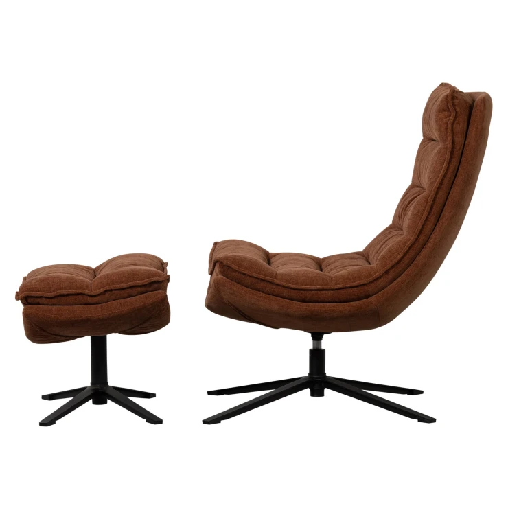 • Snurrfåtöljen Kube med hängsel kommer från det holländska inredningsmärket WOOOD. Både fåtöljen och hängseln är klädda i ett mjukt vävt tyg och står på en robust metallbas. Snurrbasen gör det enkelt att komma igång, vilket ytterligare förbättrar fåtöljens komfort. Detta kommer att bli din nya favoritfåtölj. Sätt upp fötterna och njut!