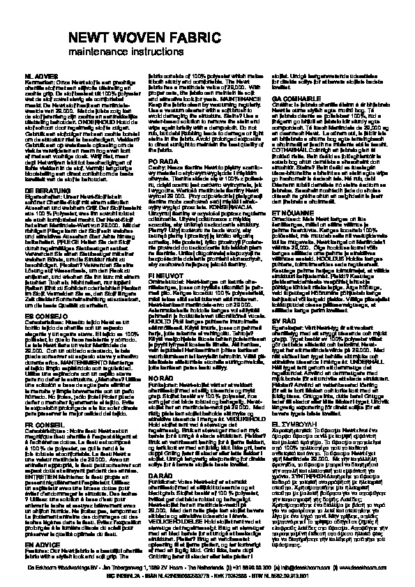 Kube snurrfåtölj och knäböj är klädda i vårt tyg Newt. Newt är ett vackert chenilletyg med ett elegant utseende och mjukt grepp. Tyget består av 100 % polyester vilket gör det både robust och bekvämt. Newt-tyget har ett martindalevärde på 29 000. Med rätt skötsel kan tyget behålla sitt mjuka och attraktiva utseende i åratal.