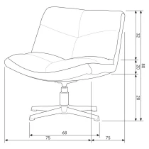- Snurrstolen Vinny har en totalhöjd på 80 cm, den bredaste och djupaste delen mäter 75 cm. Sitthöjden är 48 cm och sittdjupet är 52 cm, det är enkelt att koppla av! Sittbredden är 75 cm, ryggen är 32 cm hög och 12 cm tjock. Metallbasen är 28 cm hög och 51 cm bred och djup, snurrsystemet har en diameter på 6 cm och varje ben har en längd på 34 cm. Snurrstolen har en maximal lastkapacitet på 120 kg.