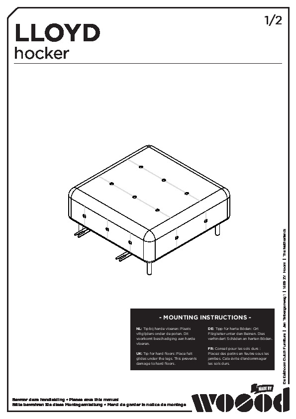 Lloyd fotpall levereras i ett paket. För att skydda hårda golv, placera filtglidare (ø2 cm) under benen.