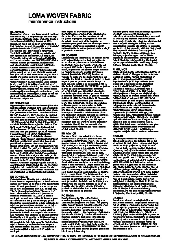 Stommen är tillverkad av lövträ och plywood och täckt med vanligt skum och sicksackfjädrar. Sitsen är fylld med ett HR 35/32 kg/m3 skum och ett lager HR 30/20 kg/m3 skum. Lloyd är klädd i vårt Loma sammetstyg och har ett lyxigt utseende. Tyget har en fin känsla och en vacker, matt glans. Den tvättade Loma-sammeten består av 80 % polyester och 20 % bomull och har en fyllig och tung kvalitet. Materialet är därför lämpligt för intensiv användning (Martindale 100 000). Sammetstyget noppar sig inte lätt men är ljuskänsligt, missfärgning av exponerat tyg kan uppstå med tiden. Tyget är, till mångas förvåning, ett mycket lättskött tyg.