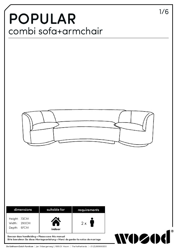 Populära sittmoduler levereras individuellt och är redan färdigmonterade. Modulerna kan skjutas ihop separat. För att skydda hårda golv, placera filtkuddar på undersidan.