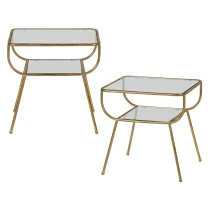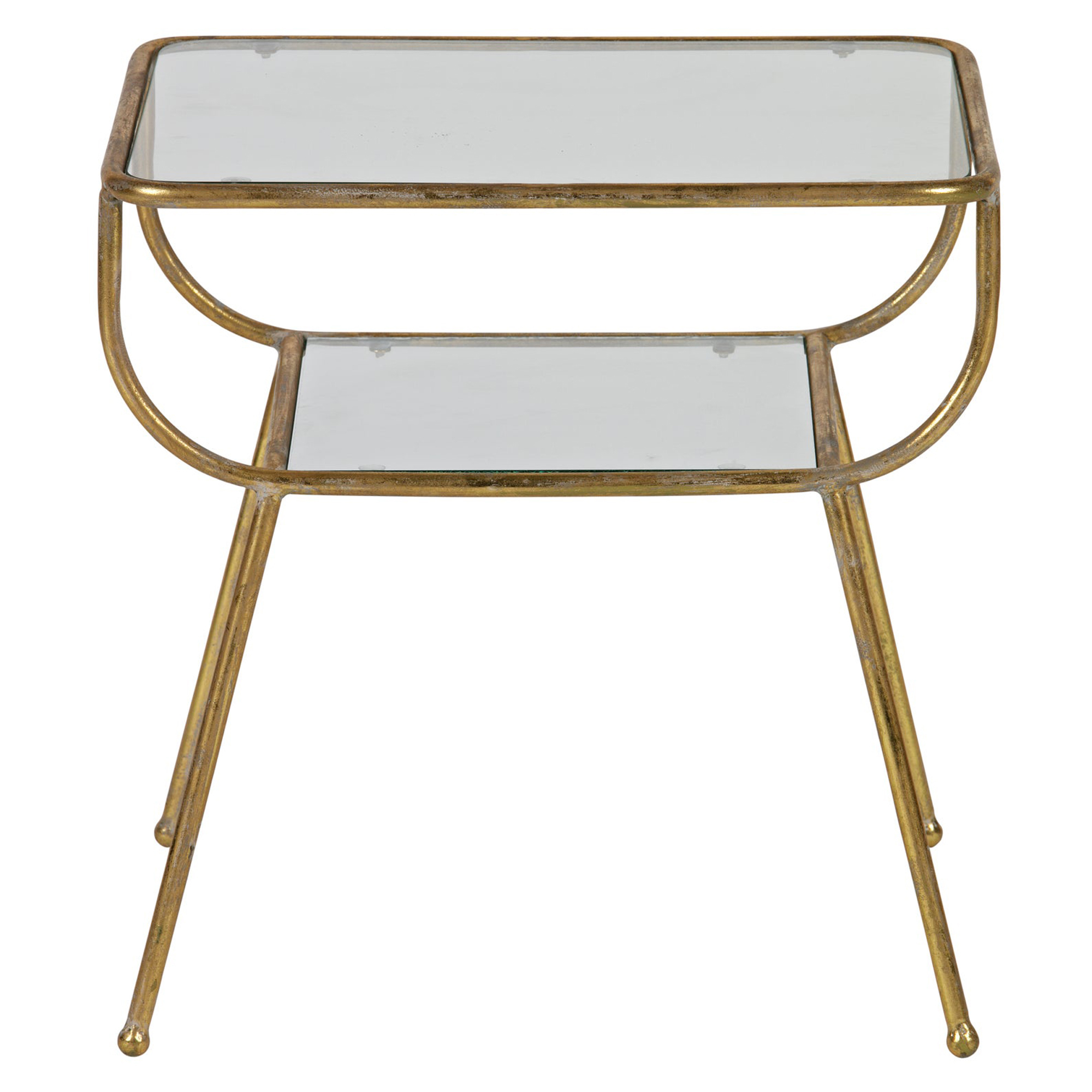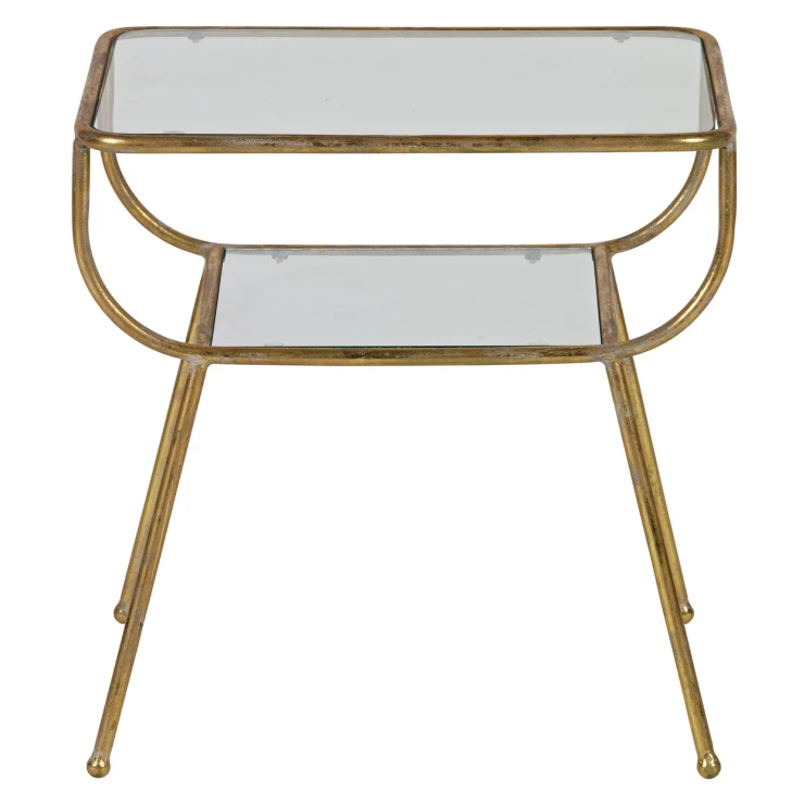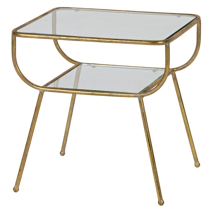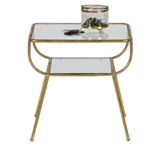 • Ett sidobord med ett lyxigt utseende! Kombinationen av metall (järn) med antik mässingsfinish och hyllplanen i glas ger det fantastiska sidobordet detta utseende. Det fantastiska sidobordet är ett riktigt tillskott i varje rum! Det fantastiska sidobordet har en höjd på 47 cm, en bredd på 47 cm och ett djup på 40,5 cm. Höjden på den första hyllan är 31 cm. Denna artikel är en del av WOOOD-kollektionen.