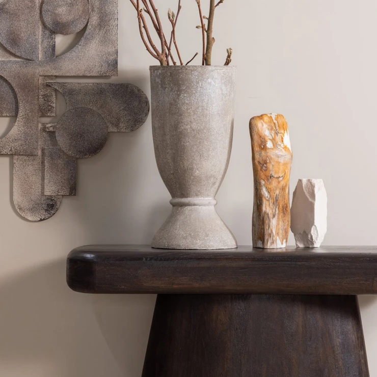 Mangoträ är känt för sin varma gyllenbruna färg, hållbara tillväxt och långa hållbarhet. Mangoträ kännetecknas också av tydligt synliga ådringar och färgnyanser. Ådringarna, ett gult sken eller mörka linjer och kvistar säkerställer att varje mangoträföremål är unikt. Amco har en svart finish.