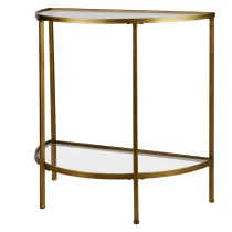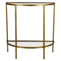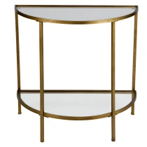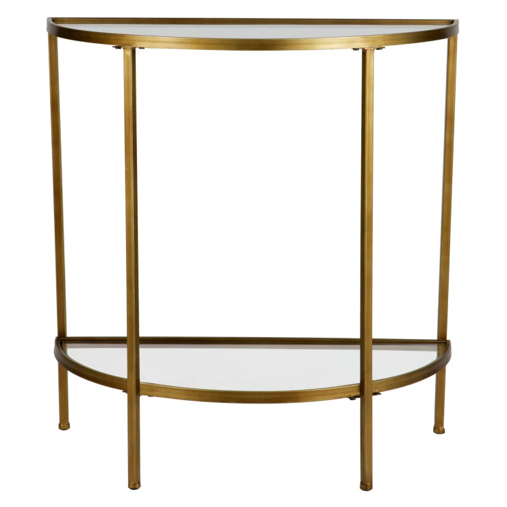 • Goddess är ett elegant sidobord från WOOODs nya kollektion som står vackert mot en vacker, iögonfallande vägg med sin plana sida. Den vackra kurvan framtill ger ett mjukt intryck. Den smala järnramen i antikmässing och glasskivorna gör att sidobordet passar in i olika boendestilar.