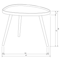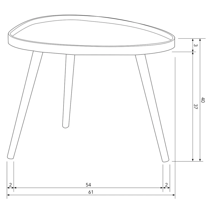 - Detta smala sidobord har en höjd på 40 cm och är cirka 61 cm brett och 50 cm djupt. Bordsskivan har en upphöjd kant som är 2 cm hög. Benen har en höjd på 37 cm och löper från toppen ø 3 cm avsmalnande till ø 1,5 cm. Själva bordet väger 2 kg och har en maximal bärvikt på 5 kg.
