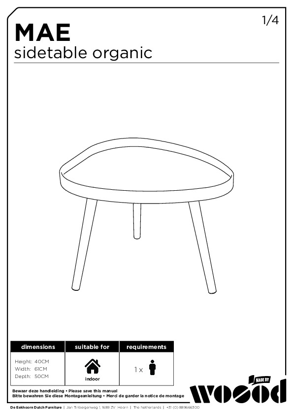 • Sidobordet Mae är ett nytt tillskott till inredningsmärket WOOODs kollektion. Mae är slående tack vare sina lekfulla, organiska former och smala benstomme. Den upphöjda kanten runt toppen säkerställer att innehållet i ett vält glas förblir säkert på bordet, så barnsäkert!