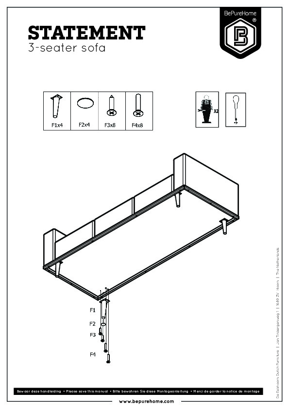 Statement er fremstillet af en kombination af massivt træ, spånplade, krydsfiner, normalt skum og syntetvat med en densitet på 250 g/m3 og en siksakfjeder. Sædet har en kerne af bonellfjeder, normalt skum og syntetvat med en densitet på 250 g/m3. Ryggen består af en blanding af polyuretanskum med en densitet på 23 kg/m3. Denne Statement er betrukket med en blød bouclé af 100 % polyester. Materialet i Colmar bouclé-stoffet svarer til den seneste trend: bløde materialer. Stoffet er komfortabelt og har en elegant tekstur. Vores Colmar bouclé har en Martindale-klassificering på 100.000, hvilket betyder, at stoffet er egnet til intensiv brug. Den tætte vævning sikrer stoffets styrke, hvilket betyder, at bouclén ikke slides eller rives let. Hver farve har også høj farvebestandighed, men det anbefales at undgå direkte sollys for at undgå farveændringer.
