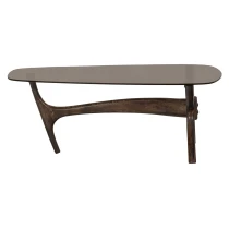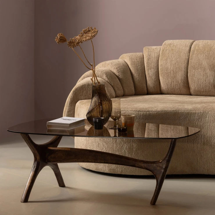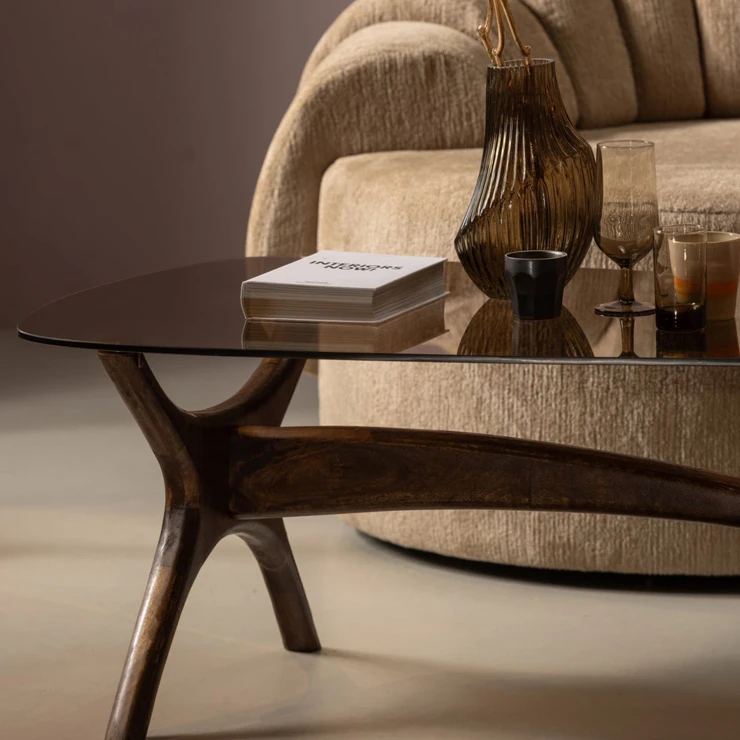 • Soffbordet Flash är ett elegant möbel med en djupbrun bas. Sidobordet kommer från kollektionen från det holländska inredningsmärket WOOOD. Det organiskt formade benet säkerställer ett stabilt stativ och ger ett fridfullt utseende. Den organiska bordsskivan är subtilt avsmalnande, vilket ger en lyxig touch.