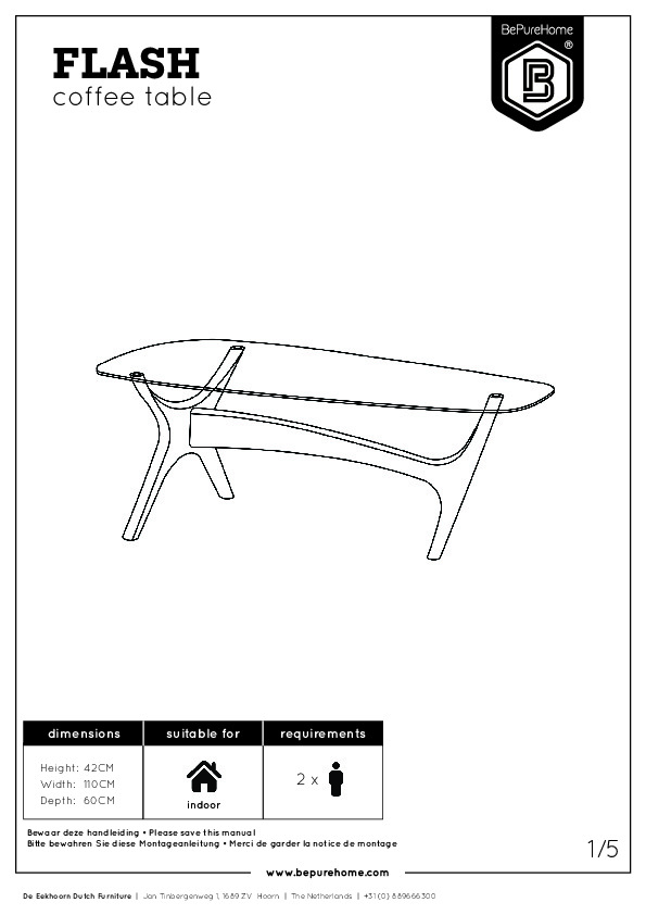 Artikeln levereras i ett paket och är enkel att montera med hjälp av de medföljande monteringsanvisningarna. För att skydda hårda golv, placera filtglidare på undersidan.