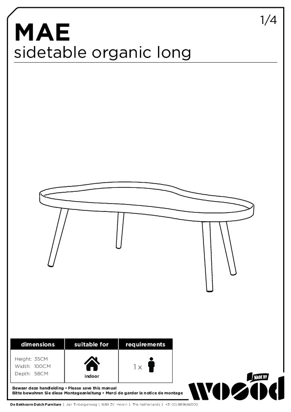 • Sidobordet Mae har nyligen lagts till i inredningsmärket WOOODs kollektion. Mae är slående tack vare sina lekfulla, organiska former och smala benstomme. Den upphöjda kanten runt toppen säkerställer att innehållet i ett vält glas förblir säkert på bordet, så barnsäkert!
