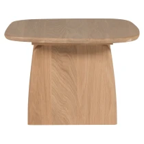 Ekträ kännetecknas av sin ljusbruna nyans med ett mjukt gult sken och tydligt synliga ådringsmönster. Ekträ torkar generellt mycket långsamt, vilket kan orsaka naturliga sprickbildningar och missfärgningar. Ekträet i våra kollektioner är FSC Mix-certifierat. Trämöbler kan förändras i utseende under påverkan av ljus och värme. I vilken utsträckning detta sker beror på rummet där möbeln placeras. Skillnader mellan möblerna och modellen i utställningslokalen är därför att förvänta; varje möbel är unik. Bordsskivan har slipats och behandlats med en transparent lack.