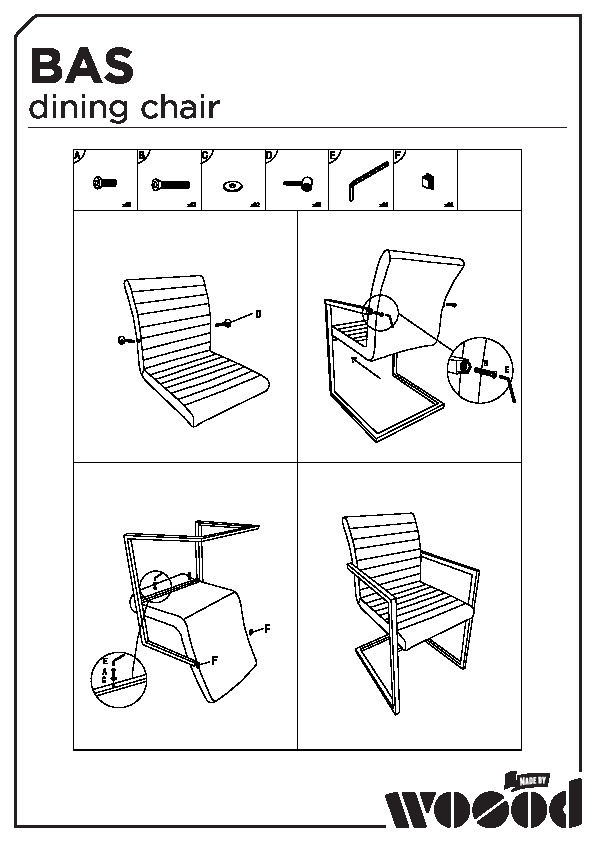 Denna Bas matstol levereras som ett byggsats med tydliga monteringsanvisningar. Tips för hårda golv: placera filtglidare under metallramen. Detta förhindrar skador på hårda golv.