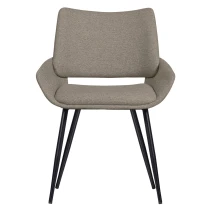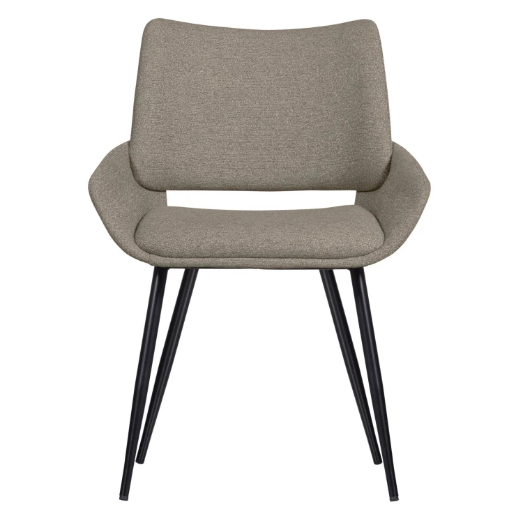 • Matstolen Parade, från kollektionen av det holländska inredningsmärket WOOOD, har en diskret badkarsformad sits klädd i ett varmt melerat tyg. Det avsmalnande metallbenet ger stolen ett luftigt utseende.