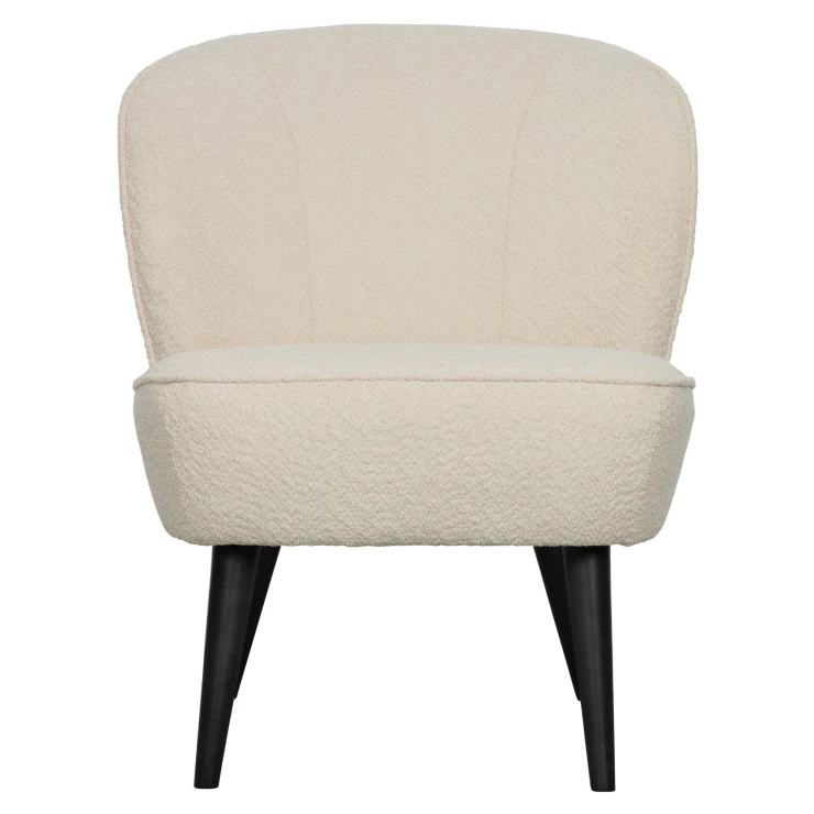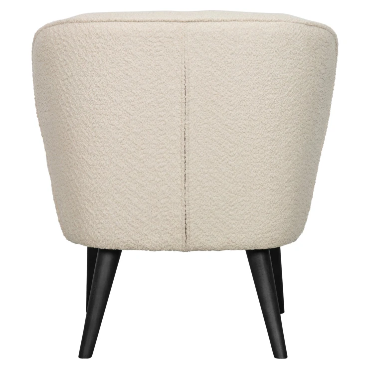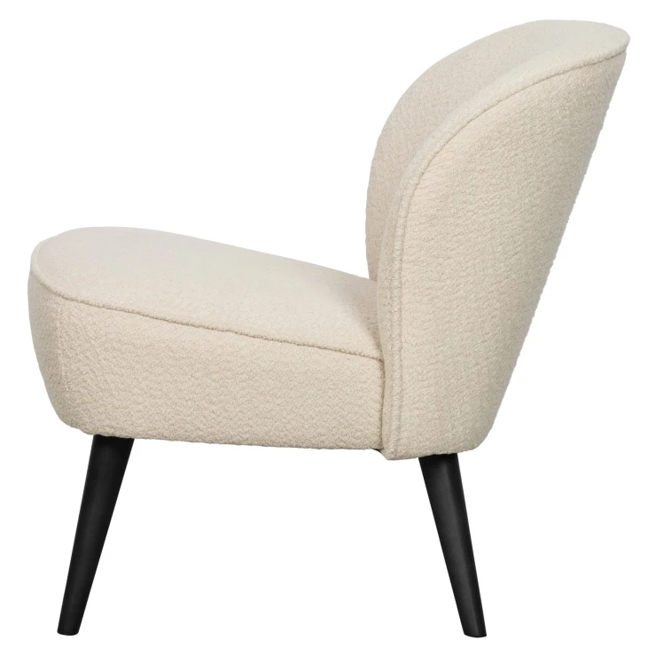 Sara är tillverkad av en kombination av lövträ och MDF. Sitsen är fylld med VP35-skum och ryggen innehåller VP21-skum, vilket ger en fast och stödjande sittkomfort. Skumsitsen hålls i form av starka resårband. Benen är tillverkade av björkträ. Sara är klädd i mjuk bouclé. Vår mjuka Almón bouclé har en elegant textur som omedelbart ger värme in i hemmet. Bouclétyget har en Martindale på 60 000, vilket innebär att det är lämpligt för ganska intensiv användning. Den täta vävtekniken säkerställer tygets styrka, vilket innebär att Almón bouclé inte slits ut eller rivs sönder lätt. Varje färg har också hög färgbeständighet, men det rekommenderas att undvika direkt solljus för att undvika färgskiftningar.