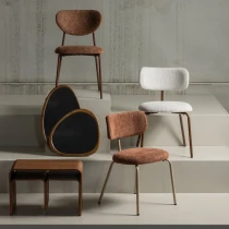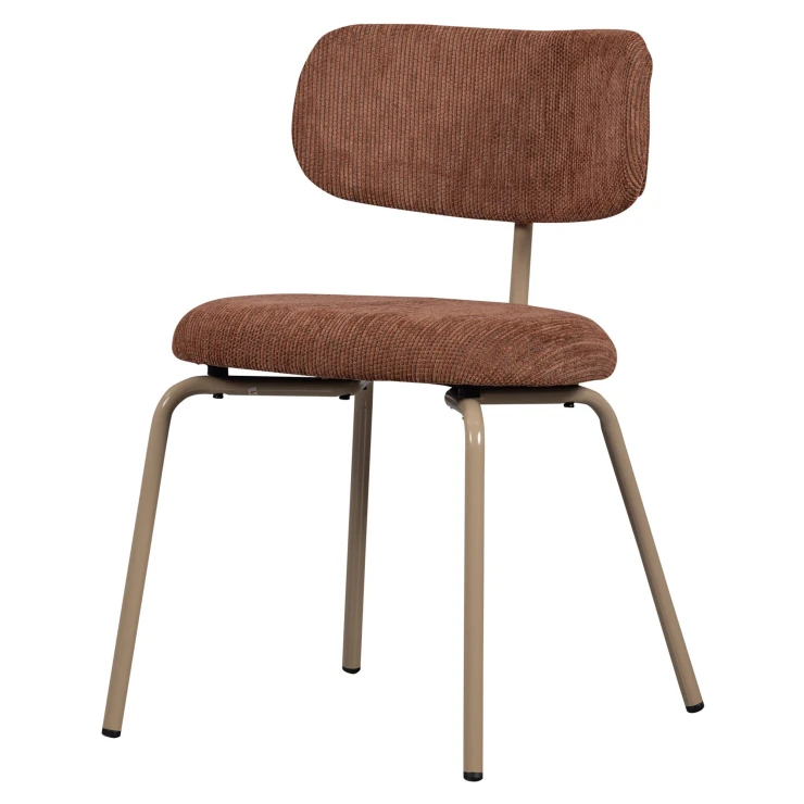 • Matstolen Travis kommer från kollektionen från det holländska märket WOOOD och har ett elegant utseende. Matstolen är klädd i ett vävt tyg och har en smal metallbas. Denna moderna design får inte saknas i din inredning.