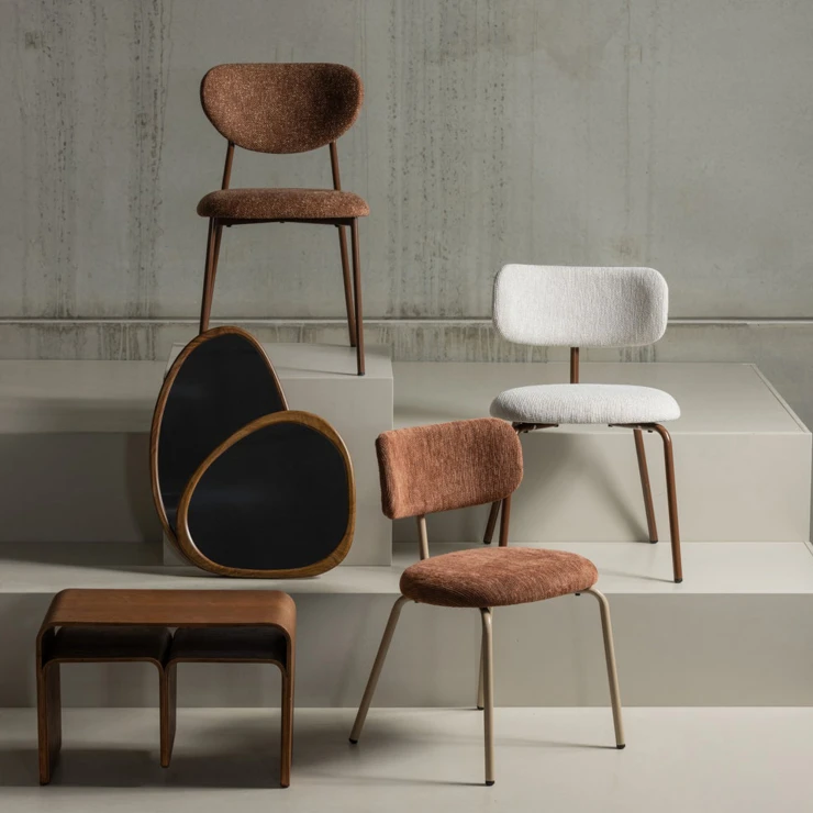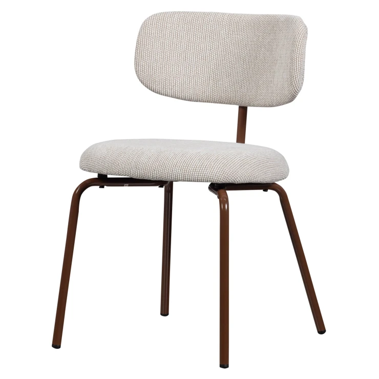 • Matstolen Travis kommer från kollektionen från det holländska märket WOOOD och har ett elegant utseende. Matstolen är klädd med ett vävt tyg och har en mörk och smal metallbas. Denna moderna design får inte saknas i din inredning.