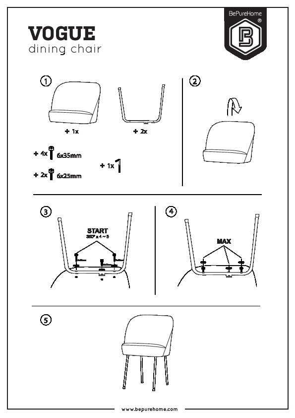 Matsalsstolen levereras i två delar i ett paket. Benen monteras enkelt själv med hjälp av de medföljande monteringsanvisningarna. För att skydda hårda golv, placera filtglidare under benen (2 cm runda), detta förhindrar skador.