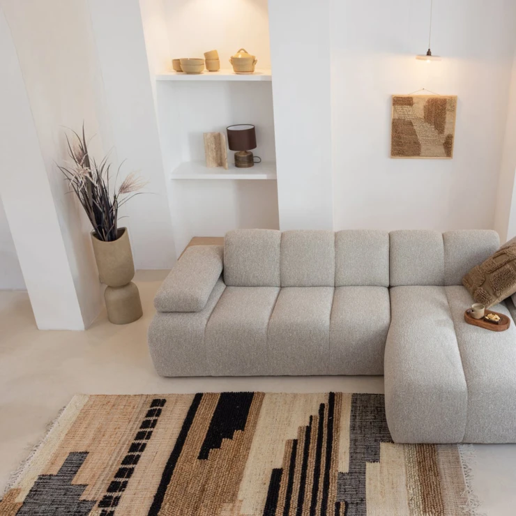 • Mattan Liberal ger din sittgrupp omedelbar värme och atmosfär. Mattan kommer från kollektionen från det holländska inredningsmärket WOOOD och kännetecknas av den naturliga färgblandningen i kombinationen av naturfibrer: jute och bomull. Jute ger mattan ett avslappnat utseende och bomullen säkerställer ett bekvämt grepp, den bästa kombinationen enligt oss!