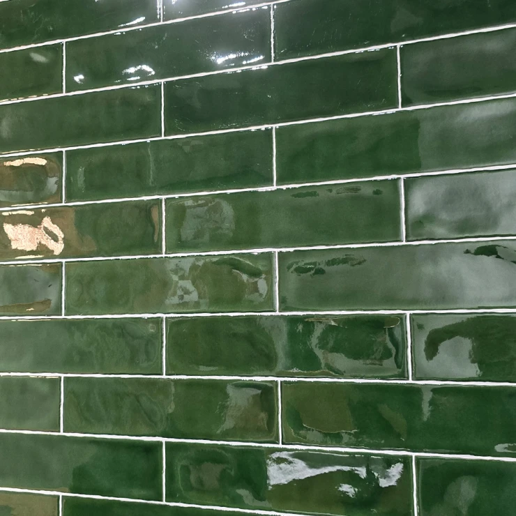 Vægflise Zephyr Flaskegrøn Blank 7.5x30 cm med Krakeleringseffekt
