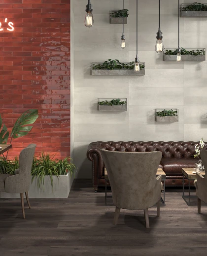 Findes i både mat og blank overflade, hvilket giver den perfekte balance mellem tradition og moderne design. De udtryksfulde farver og den taktile struktur gør det muligt at skabe markante vægge eller varme, indbydende gulve med en stærk personlighed.
