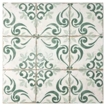 KLD1281 - Flerfärgad 20x20 Klinker med mönstrad textur och satin yta. Frostsäker och tål golvvärme är egenskaper för denna klinker, vilket gör att den lämpar sig i alla utrymme, till exempel: badrum, kök, hall. Antiga är kvalitets klinker från Hill Ceramic®, alla produkter är tillverkarede i EU och uppfyller svensk byggstandard för kakel och klinker. Mer produktspecifikation för Dune Klinker Antiga Barraquetes Verde Satin 20x20 cm hittar ni i informationsfältet på denna sida