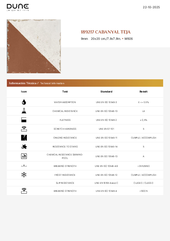 Dune Klinker Antiga Cabanyal Teja Mat 20x20 cm