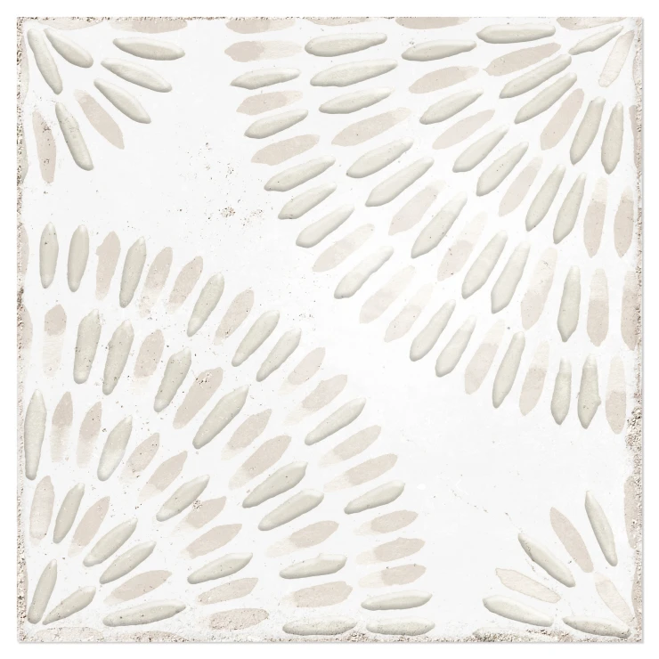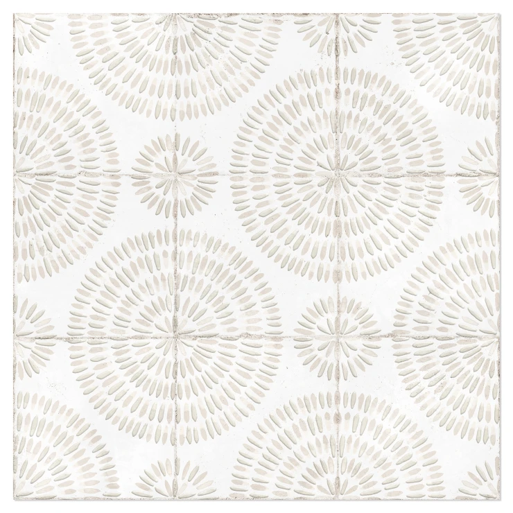 - 20×20 cm porcelænsfliser med mat overflade, samt i udvalgte farver med en mat-blank effekt, hvor transparent glasmasse fremhæver detaljerne og giver subtil glans og volumen