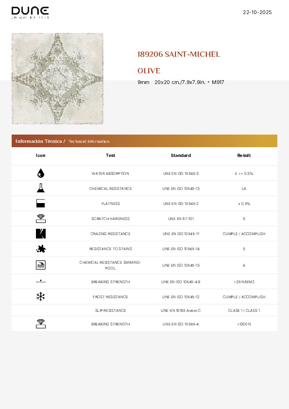 Dune Klinker Atlantique Saint-Michel Olive Matt-Blank 20x20 cm från serie Atlantique. Klinker 20x20 cm kan användas både till vägg och golv. Atlantique har en matt yta med en rund kant. Det nominella måttet och annan specifikation på denna platta ni kan hitta i tabellbeskrivning. Denna platta har en mönstrad textur. Sök efter kollektionsnamnet (Atlantique) för att se om det ingår i en serie som kanske erbjuder fler storlekar, samt andra färger. KLD1263 - Flerfärgad 20x20.