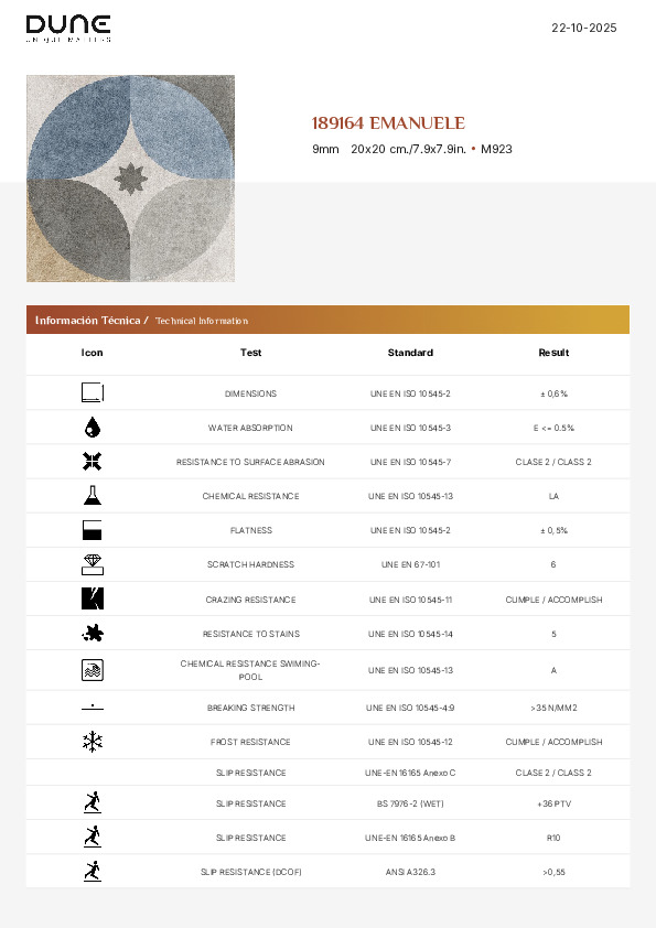 Dune Klinker Milano Emanuele Matt 20x20 cm från serie Milano Dune. Klinker 20x20 cm kan användas både till vägg och golv. Milano Dune har en matt yta med en rund kant. Det nominella måttet och annan specifikation på denna platta ni kan hitta i tabellbeskrivning. Denna platta har en mönstrad textur. Sök efter kollektionsnamnet (Milano Dune) för att se om det ingår i en serie som kanske erbjuder fler storlekar, samt andra färger. KLD1249 - Flerfärgad 20x20.