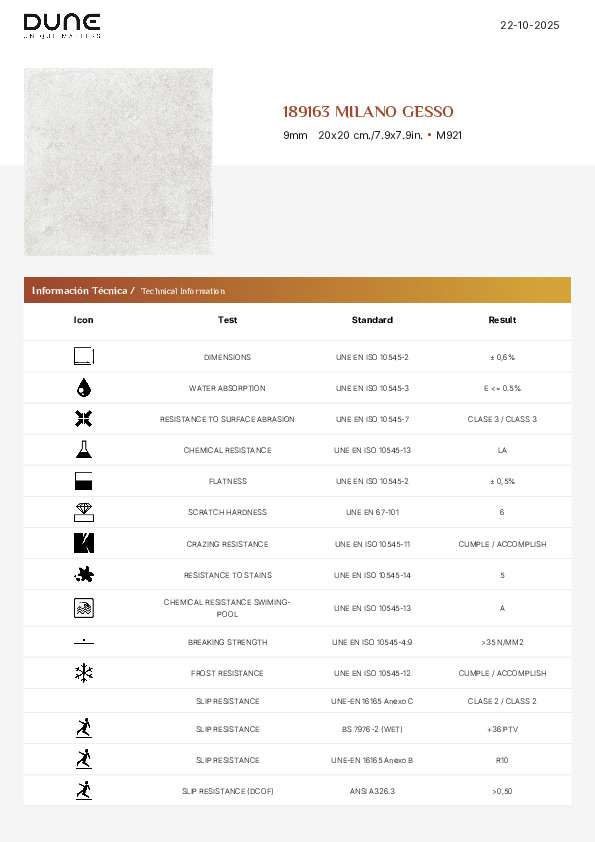 Dune Klinker Milano Dune Gesso Mat 20x20 cm