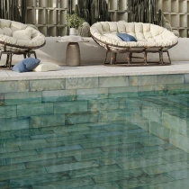 Klinker Eclat Grøn Blank 15x45 cm fra serien Eclat. Klinker 15x45 cm kan bruges både til væg og gulv. Eclat har en blank overflade med en rund kant. De nominelle mål og andre specifikationer for denne flise kan du finde i tabelbeskrivelsen. Denne flise har en ensfarvet tekstur. Søg efter kollektionsnavnet (Eclat) for at se, om det indgår i en serie, der måske tilbyder flere størrelser samt andre farver. KLR3056 - Grøn 15x45.