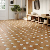 Edwardian är en kollektion inspirerad av de dekorativa terrakottagolv som var typiska för slutet av 1800-talet och början av 1900-talet, där färg, geometri och hantverk samverkade i hållbara och uttrycksfulla golv. Med tydliga referenser till edvardianska och tidiga sekelskiftesmiljöer fångar kollektionen värmen och rytmen i klassiska golv, tolkade i ett modernt porslinsformat.