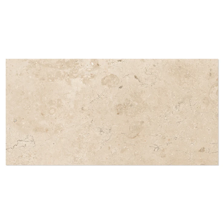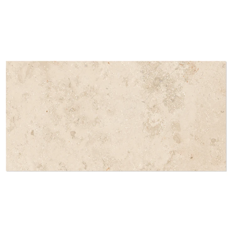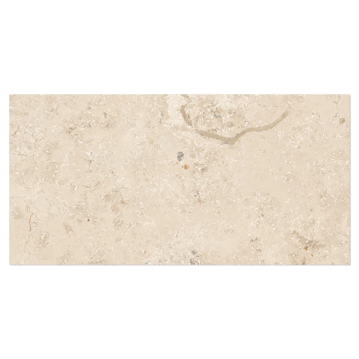 Farveskalaen domineres af varme, jordnære beige- og bruntoner, med subtile variationer, der afspejler kalkstenens naturlige spil.