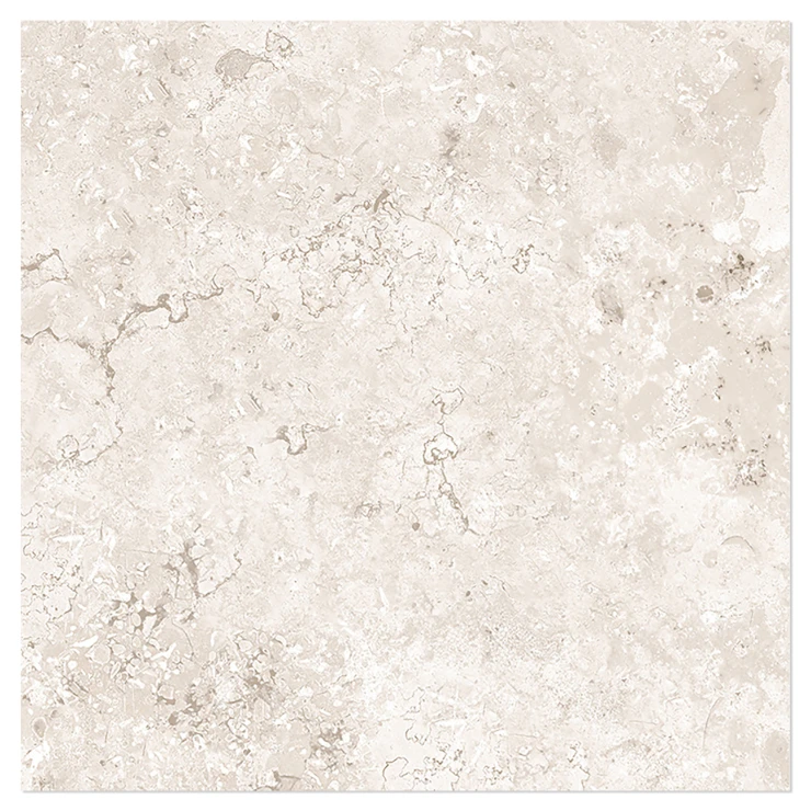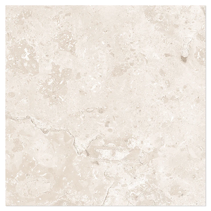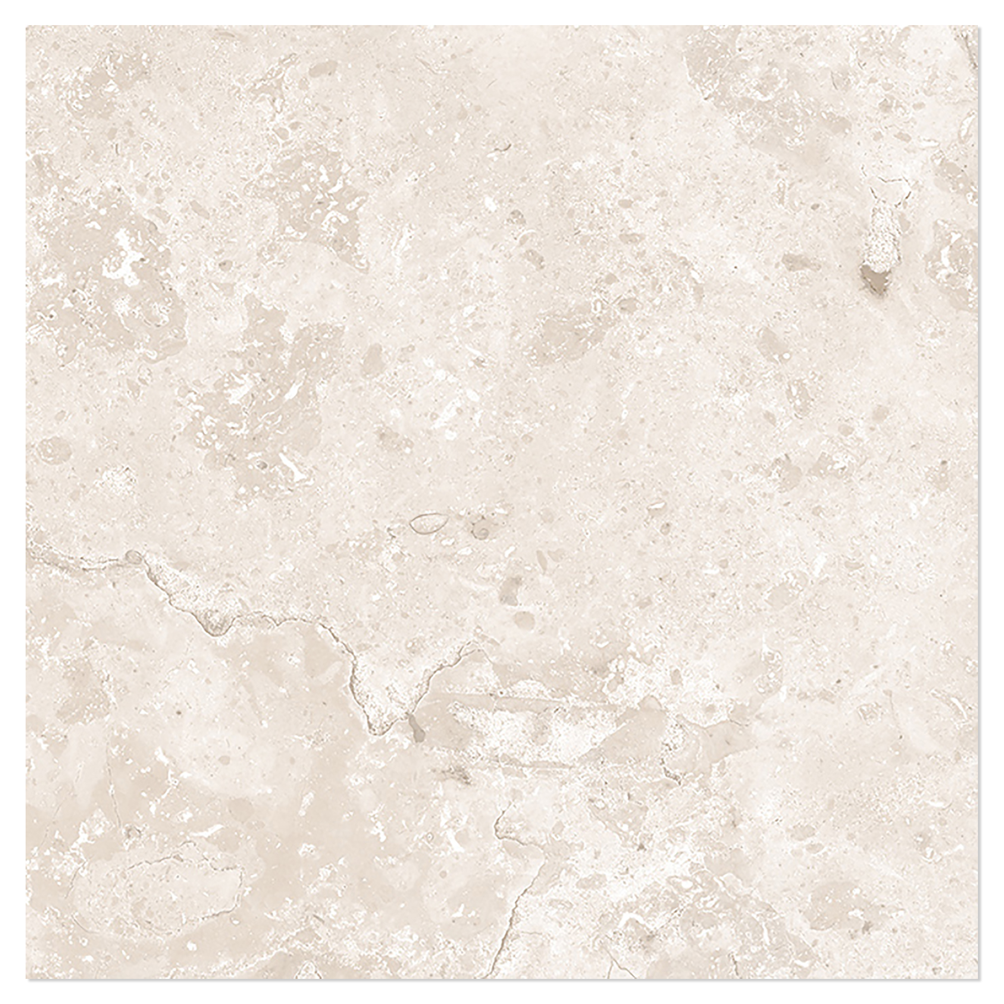 Farveskalaen domineres af varme, jordnære beige- og bruntoner, med subtile variationer, der afspejler kalkstenens naturlige spil.