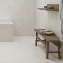 Den matte overflade og den fine stenåring gengiver på autentisk vis følelsen af ægte kalksten med en raffineret råhed, der tilfører dybde og karakter til ethvert rum.