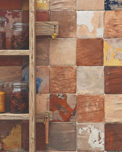 Farvepaletten er baseret på jordnære og mineralinspirerede nuancer, som spænder fra varme ler- og sandtoner til afdæmpede sten- og askefarver. Naturlige variationer mellem fliserne er en bevidst del af designet og bidrager til levende, harmoniske flader med et håndværkspræget udtryk.