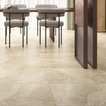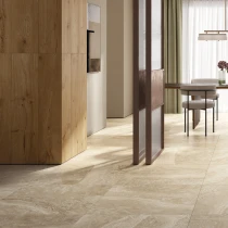 Kollektionen Lithos indfanger den tidløse elegance i italiensk travertin med et stilrent tværsnit-design. Fås i fire klassiske farver og to overflader – naturlig og tekstureret, hvor hver flise genskaber stenens autentiske karakter med subtile variationer og dybde, hvilket tilføjer varme og sofistikering til ethvert rum.