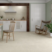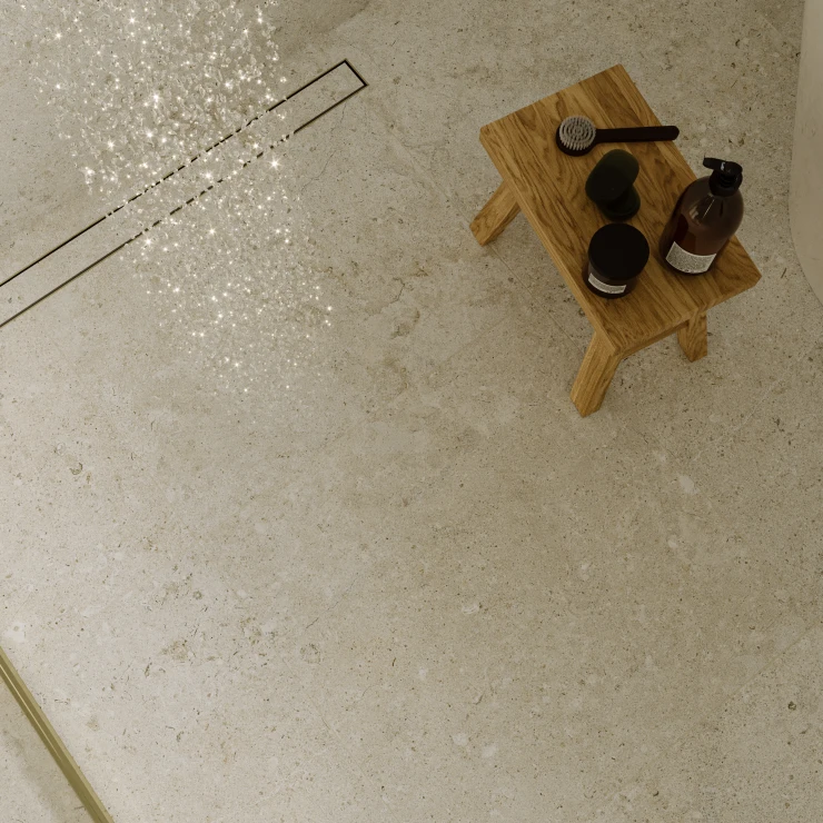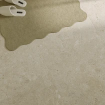 Den matte overflade og den fine stenåring gengiver på autentisk vis følelsen af ægte kalksten med en raffineret råhed, der tilfører dybde og karakter til ethvert rum.